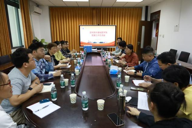 会上,谢沫珠就党支部规范化建设和“双创”样板党支部建设的路径和方法作了发言,介绍了学院党委关于“双创”工作的建设目标、主要做法和所取得的成效,以及各党支部的建设情况。同时她也分享了做好党支部“三会一课”、主题党日的规范化建设细节,以及提升队伍凝聚力的方法。双方就党建“双创”工作开展了深入交流。温斌对基础医学院的热情接待和无私分享表示感谢,表示期待双方继续密切沟通、互学互鉴、携手并进,共同推动党建工作再上新台阶,为学校高质量发展贡献更多力量。