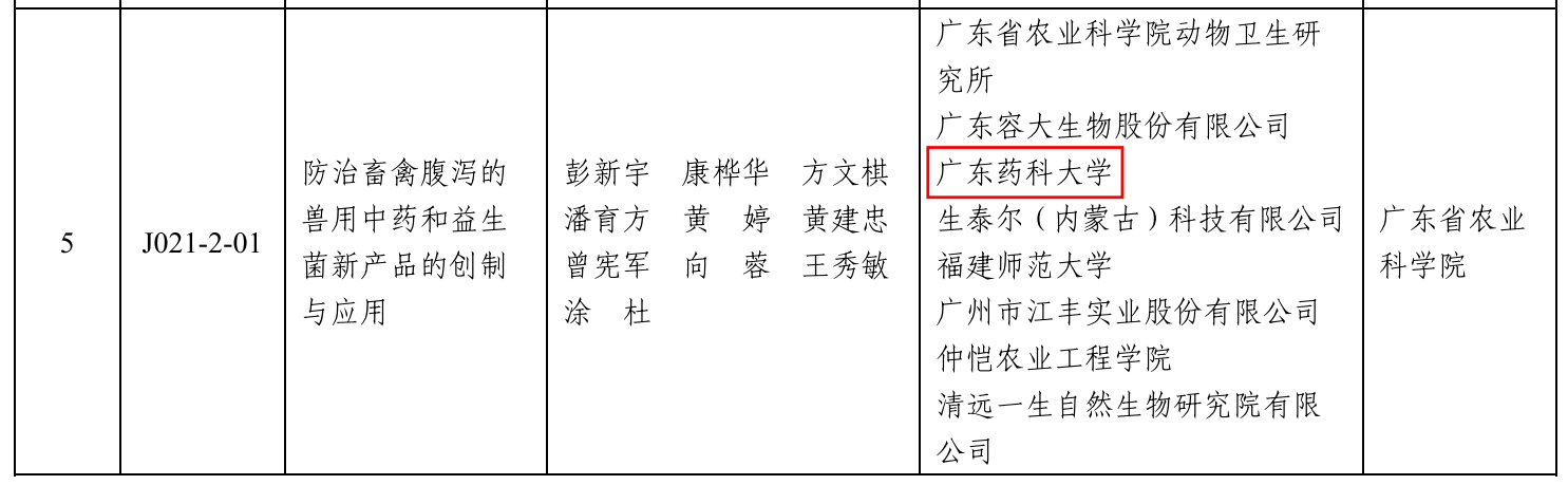 我校作为第三完成单位,潘育方教授参与完成的“防治畜禽腹泻的兽用中药和益生菌新产品的创制与应用”项目针对畜禽养殖腹泻防治难题,深入研究,推出系列兽用中药与益生菌新产品,为畜禽健康养殖提供绿色高效可持续方案,既产生显著经济效益,也推动了畜牧行业健康发展。
