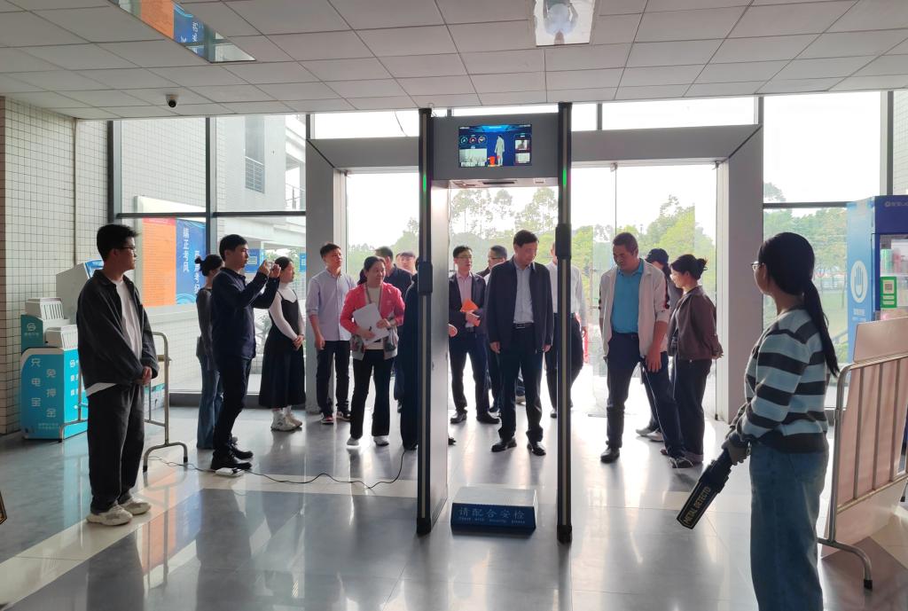 刘晟一行先后深入学校南门入口处、教学楼、保密室、监控室等关键区域,重点核查考生等候区的引导、学生流秩序维护,标准化考场的监控设备、安全门调试情况,以及考务室指挥系统、试卷分发室的流程等核心环节。在听取相关部门关于考务组织统筹、安全保密管理、服务保障落实及应急处置预案等工作的汇报后,刘晟对考前筹备工作给予了肯定,向考点工作人员、主动参与志愿服务的研究生们致以亲切慰问和诚挚感谢。他强调,全国硕士研究生招生考试是国家选拔高层次人才的重要平台,关系到广大考生的切身利益,关系到教育的公平与正义。要进一步提高政治站位,深刻认识研考工作的极端重要性,全面梳理工作流程,精准排查风险隐患,及时补齐薄弱环节,全力保障2025年研究生招生考试工作安全平稳、顺利完成。