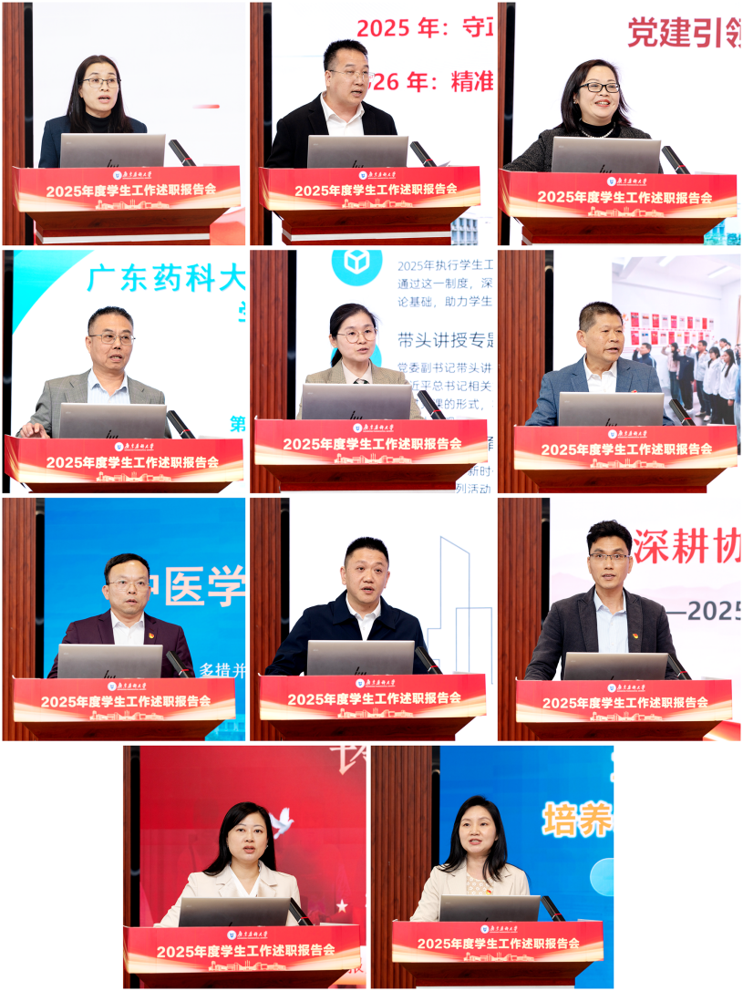 会上,各单位、各学院分管学生工作负责人围绕2025年度学生工作履职情况依次作述职,其中11位同志现场述职、4位同志书面述职。各学院紧密结合专业特点与学生工作的实际状况,聚焦思想引领、日常管理、辅导员队伍、学风营造、社会实践、心理健康教育、就业指导服务、校园文化和“一站式”学生社区建设等重点工作,展示了各自特色亮点和标志性成果,并深入剖析了工作中存在的不足,紧密围绕学校2026年中心工作,系统谋划并明确了下一阶段的工作思路与重点举措。与会人员进行了现场评议。