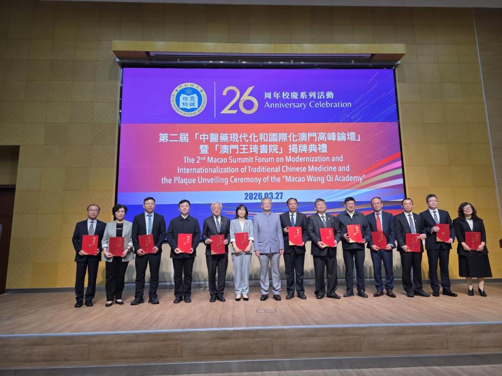 27日下午,翟理祥出席第二届“中医药现代化和国际化澳门高峰论坛”暨“澳门王琦书院”揭牌典礼。中国工程院院士、国医大师王琦为翟理祥颁发书院“荣誉特聘教授”聘书。双方将以“澳门王琦书院”的创建为契机,共同培养中医药高层次拔尖人才,加快推进中医药现代化和国际化。