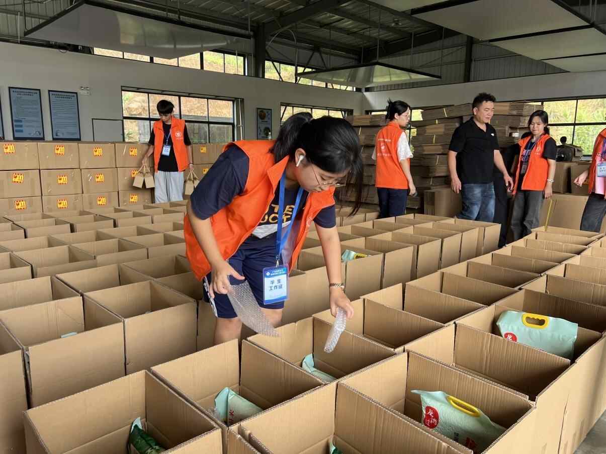 龙湾南药产业孵化园除了大力培植南药产业外,还大力开拓其它农作物产业,比如大豆、花生、水果玉米、生态丝苗米、辣椒、蜂蜜等,近年来为龙湾乡村振兴事业作出了很大的贡献。在广东省乡村振兴驻龙湾镇帮扶工作队队员钟嘉子(兼棠棣村驻村第一书记)、马鸿伟的引领下,实践团对该乡镇企业进行了考察。考察时,正值车间对农产品进行包装作业,实践团成员与村民一起劳动,汗流浃背,切身体验到了劳动的艰辛。