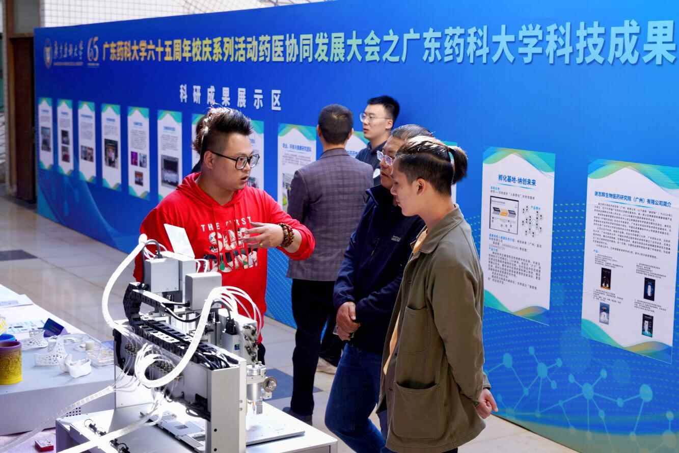 11月18日,广东药科大学迎来65周年校庆。校庆重磅活动之一“药医协同发展大会——科技成果对接会”在广东药科大学举行,展出学校近年来探索产学融合、服务社会取得的超百项成果。中国工业经济联合会专务、商务部投资促进局原副局长张迎新,广东国防科技推广中心主任杨海东,广东药科大学副校长肖炜等嘉宾出席会议。