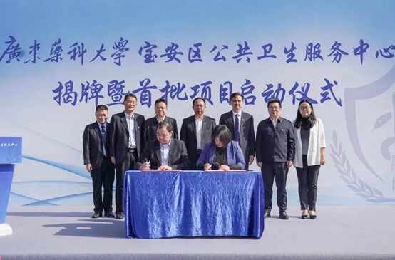 1月16日,广东药科大学宝安区公共卫生服务中心揭牌暨首批项目启动仪式在宝安区公共卫生服务中心举行。广东药科大学副校长肖炜、深圳市宝安区公共卫生服务中心主任周小涛代表双方签署合作共建协议。