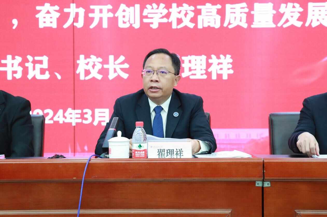 广东药科大学校长翟理祥要求全校上下从六方面发力,奋力跑出建设特色鲜明高水平药科大学的“加速度”,以学校所能服务广东高质量发展所需:以高质量党建引领学校高质量发展,以党的创新理论指导提升管理服务质量;做好本科教育教学审核评估“后半篇文章”,持续提升人才培养质量;进一步聚焦医药产业全链条和生命全周期的“大健康”学科专业集群,坚定不移走特色发展道路;着力撬动人才杠杆激活高质量发展活力,不断增强学校高质量发展“软实力”;建立健全成果转化和产学研合作新机制,促进学校科技成果形成新质生产力;抓紧推进管理体制机制改革向纵深和实处发展,持续提升高质量管理服务效能。翟理祥希望全体员工凝心聚力,紧抓新发展机遇,直面新发展挑战,更有定力提振精神、提升境界,更有动力开拓视野、开放办学,更有活力走出去、请进来,更有实力多拿奖牌、多赢掌声,以一流的管理服务支撑高水平大学建设,再创广药大高质量发展新业绩。