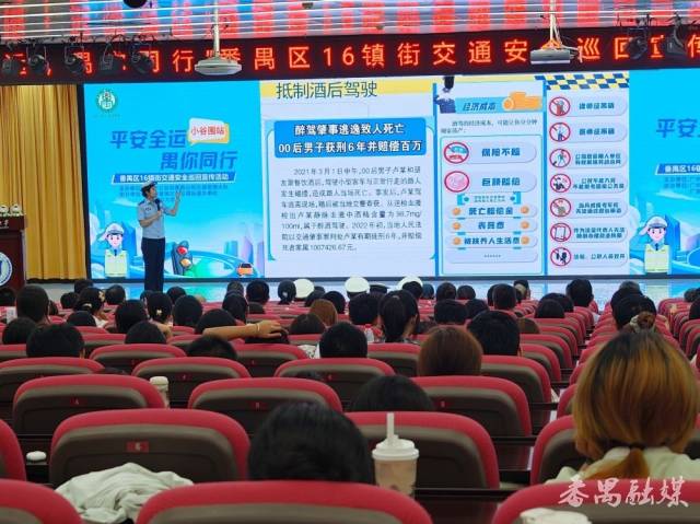 10月16日下午,“平安全运 ‘禺’你同行”番禺区16镇街交通安全巡回宣传活动(小谷围站)在广东药科大学举行。本次活动由广州市公安局番禺分局交通管理大队主办,小谷围街道办事处与广东药科大学协办,小谷围街各村(居)交通安全负责人、重点企业代表、广州大学城10所高校学生代表等500余人参与,通过“宣讲+体验”的模式,为参与者筑牢道路安全防线。