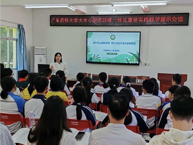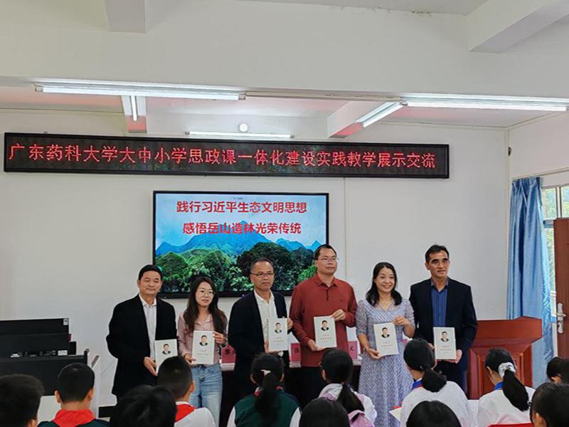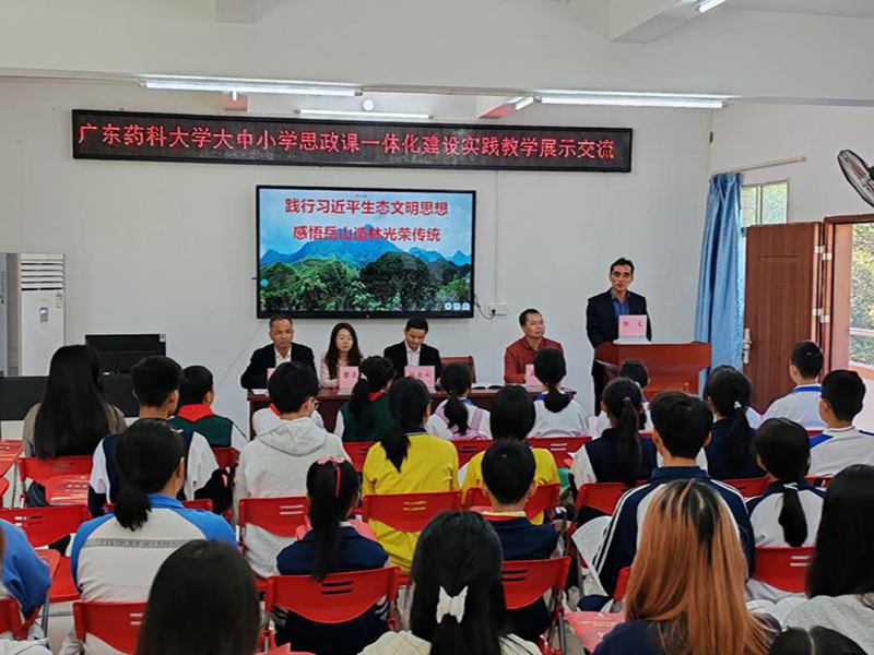 为深入贯彻落实习近平生态文明思想,扎实推进大中小学思政课一体化建设,切实推动“双百行动”落地见效,10月26日,广东药科大学马克思主义学院联合肇庆市怀集县、云浮罗定市、佛山市三水区等共建单位,由广东省基础教育教研体系县(市、区)教研项目(怀集县项目)暨广东省聂廷庆名师工作室承办,在肇庆市怀集县蓝钟镇岳山林场开展大中小学思政课一体化实践教学展示交流活动。