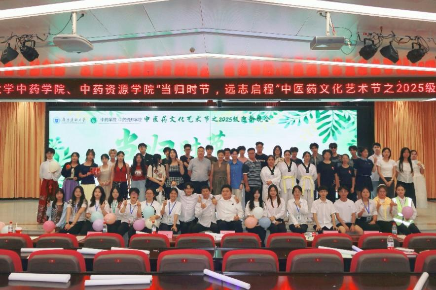 9月26日晚,中药学院、中药资源学院在大学城校园国际会议中心举行“当归时节,远志启程”中医药文化艺术节之2025级迎新晚会。学院党委书记杨苑芬、各年级辅导员与全体新生参加晚会。