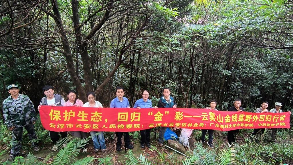 10月23日,中药学院、中药资源学院联合云浮市云安区人民检察院、云安区林业局共同发起了云雾山金线莲野外回归行动,成功将1500余株人工扩繁的金线莲种苗送回了它们的原生家园。