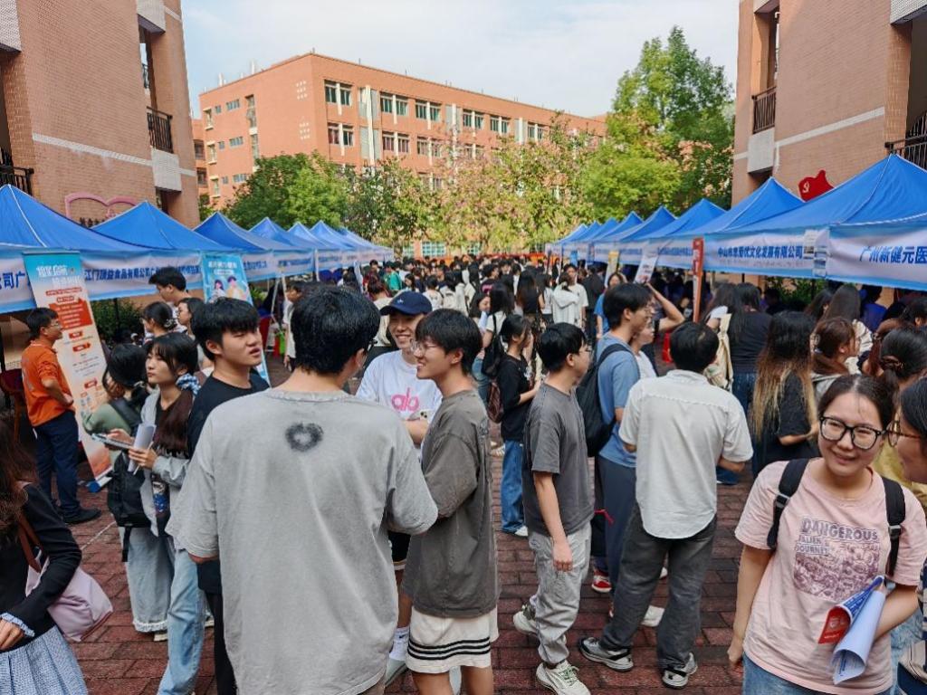11月6日,医药商学院举办2026届毕业生实习就业双选会,22家医药销售、物流管理、电子商务、国际贸易等领域的企业到场,提供了300多个工作岗位,吸引了近千名学生前来现场面试。