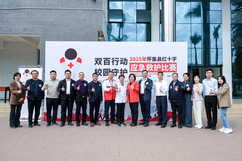11月23日,“双百行动·校园守护”——2025年怀集县红十字应急救护比赛在怀集县第一中学成功举办。本次比赛由广东药科大学、广东食品药品职业学院等单位共同指导,怀集县红十字会、怀集县教育局、怀集县卫生健康局联合主办,学校附属第一医院与广东食品药品职业学院护理学院等单位共同承办。