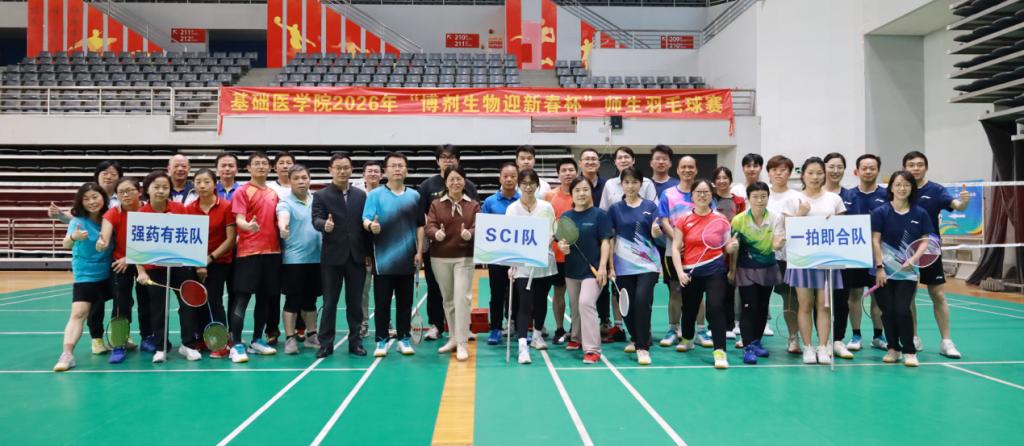 1月15日,基础医学院在学校体育馆举行“博剂生物迎新春杯”师生羽毛球混合团体赛。学院领导、参赛教师及各年级学生共计34名选手齐聚赛场,以球会友,共迎新春。