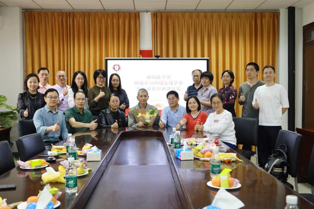 3月20日,基础医学院在学院办公楼举行陈东波老师荣休座谈会。学院领导班子成员、病理学与病理生理学系全体教师及部分学院教师齐聚一堂,共同向在岗位上默默耕耘39载的陈东波老师致敬并送上美好的祝福。