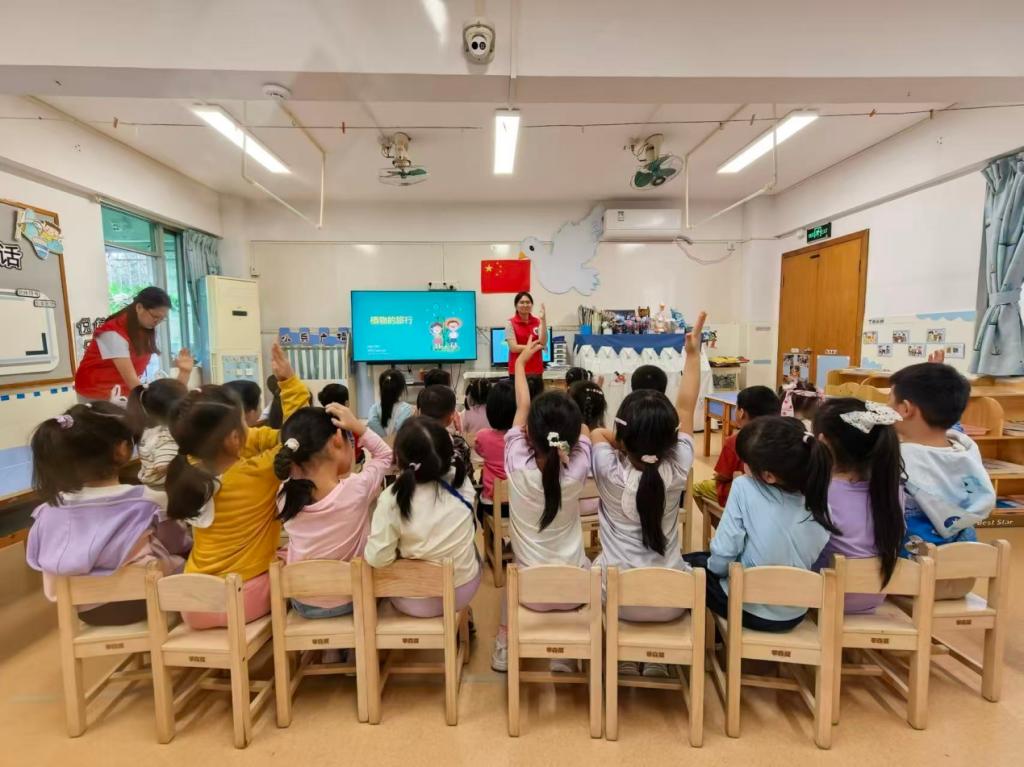 活动前,我校带队老师与武警广东总队幼儿园负责人就活动组织、流程安排及安全教育等工作进行多次沟通交流,以确保活动安全有序开展。活动中,志愿者们以“植物的旅行”为主题,通过趣味科普视频、实物观察、互动问答等生动形式,带着孩子们认识了会“飞”的蒲公英、会“跳”的豆荚、会“搭便车”的苍耳子等,了解植物种子神奇的传播方式,感受大自然的智慧与生命力。他们以苍耳、辛夷、紫苏、薏米等常用中药材与药食同源物品的种子为例,用通俗易懂的语言讲解植物的特性与中医药常识,引导孩子们看一看、摸一摸、闻一闻,在轻松有趣的氛围中感受中医药的独特魅力。志愿者们还着重普及植物安全知识,提醒幼儿不随意采摘、食用野外植物与种子,引导孩子们强化自我保护意识。