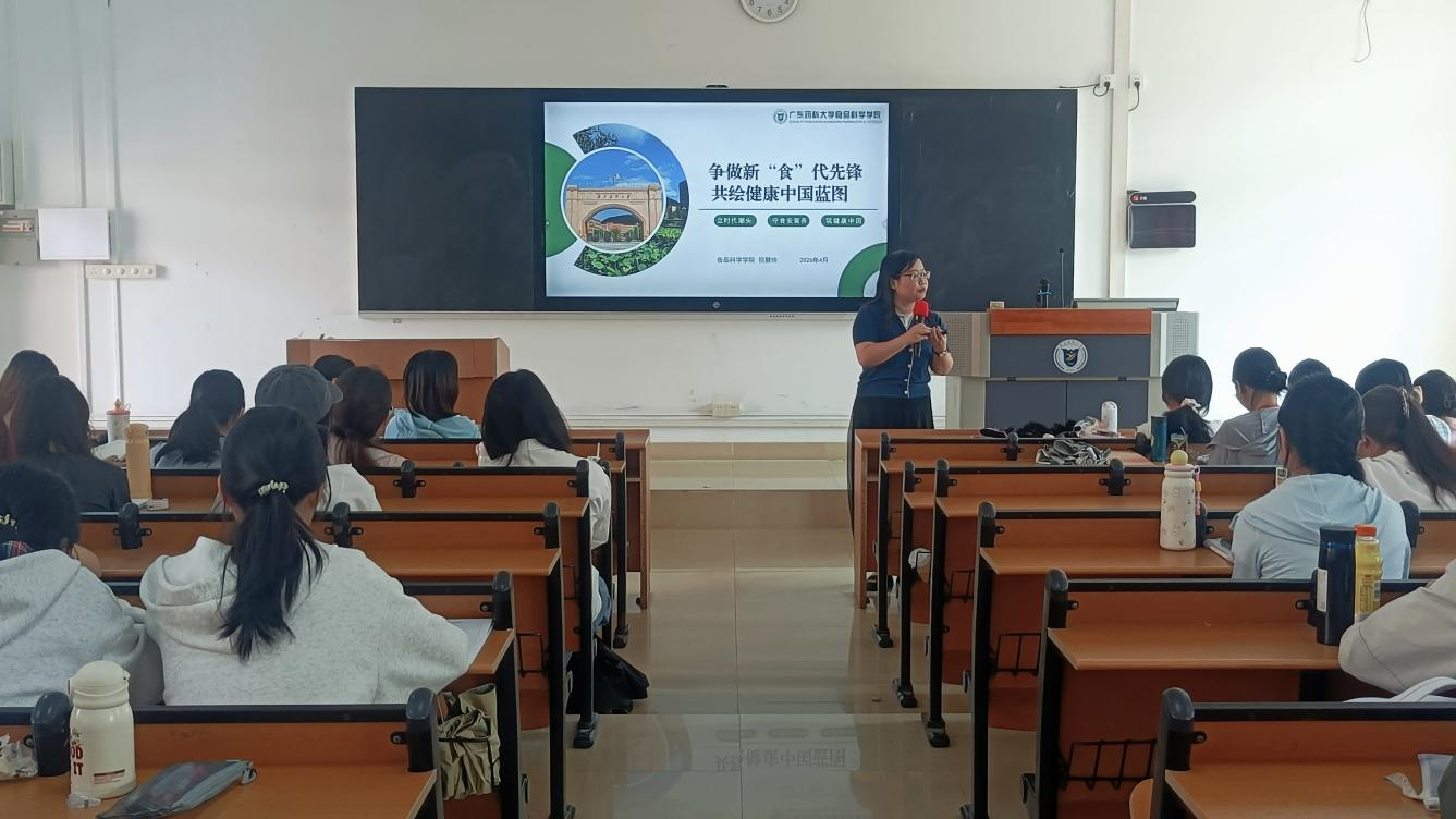 4月1日,食品科学学院党委书记倪慧玲在中山校区为食品营养与健康专业2025级本科生讲授了题为“争做新‘食’代先锋,共绘健康中国蓝图”的思政第一课。