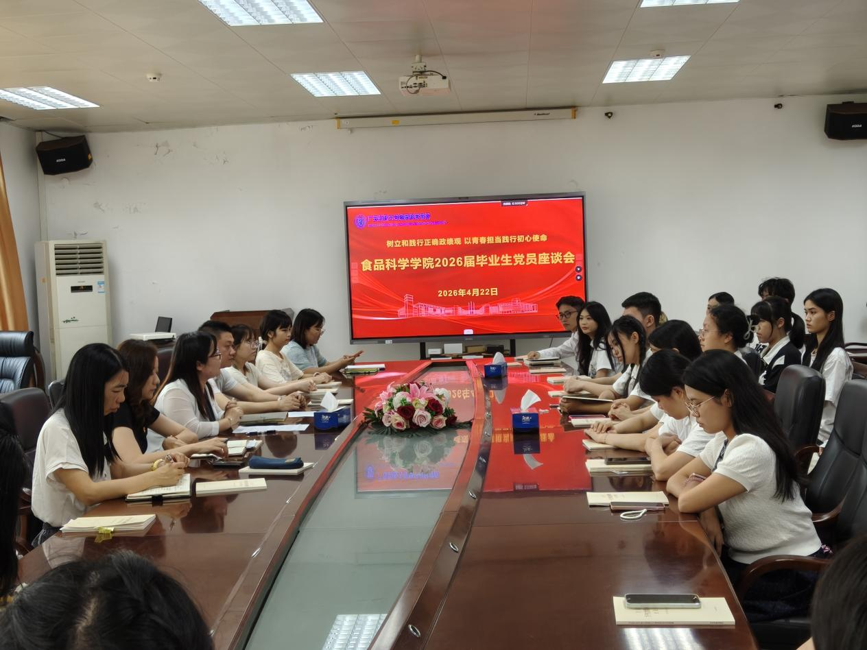 4月23日,食品科学学院在学院会议室召开2026届毕业生党员座谈会。学院党委书记倪慧玲及相关负责人、全体辅导员及全体毕业生党员参加了本次会议,会议由倪慧玲主持。